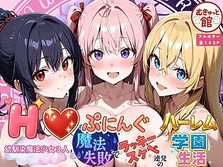 FANZA同人 Hぷにんぐ 幼馴染魔法少女3人と魔法失敗でラッキースケベ連発のハーレム学園生活【むぎゅっと館】